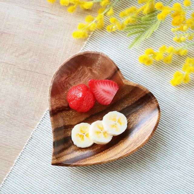 プレート 15cm ハート アカシア製 食洗機対応 ( 食器 木製食器 アカシア 皿 お皿 小皿 木製 ハート型 ウッドプレート 北欧風 カフェ風 トレイ アカシア食器 木目 取り皿 パン皿 木 ケーキ皿 銘々皿 おしゃれ )