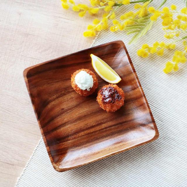 プレート 17.5cm M スクエア アカシア製 食洗機対応 ( 食器 木製食器 アカシア 皿 お皿 中皿 木製 四角 取り皿 ウッドプレート 北欧風 カフェ風 トレイ アカシア食器 木目 取皿 パン皿 木 おしゃれ )