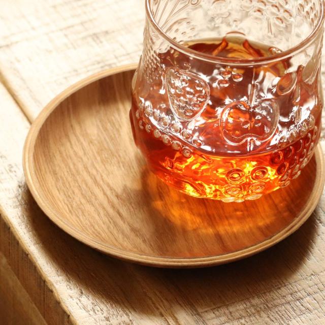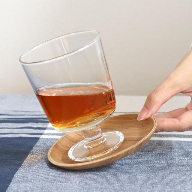 グラスやカップだけでなくチョコレート等の小さなお菓子を乗せても素敵です。優しい木目調なので、洋食器にも和食器にも馴染みます。