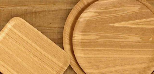 ゆるやかな縁が手に取りやすいデザインです。裏にはさりげなくキントーのロゴが刻印されています。天然木ならではの温かみのある質感と木目を楽しめます。
