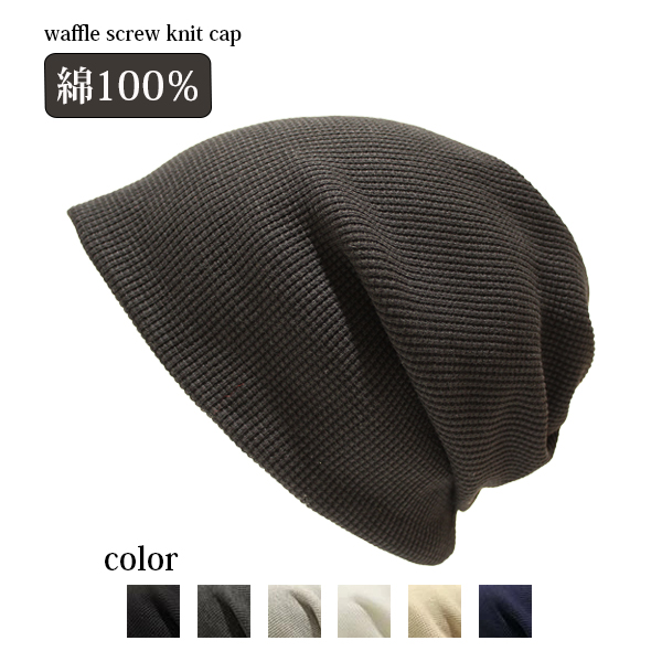 【ニット帽 メンズ】 綿100% メール便送料無料 ネックウォーマー ターバン 春夏 秋冬 防寒 おしゃれ コットン ヘアバンド 幅広 医療用帽子 抗がん剤 ケア帽子 治療 脱毛 スクリュー 3way 大きめ 男性 女性 レディース ワッフル生地 フェイスマスク【waffle screw knit cap】