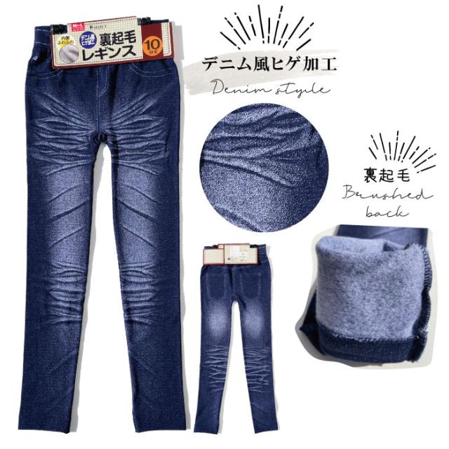 1点までメール便発送可 ゆったりはける 裏起毛 10分丈 デニムプリント レギンス M〜L L〜LL 選べる4種 LegStyle