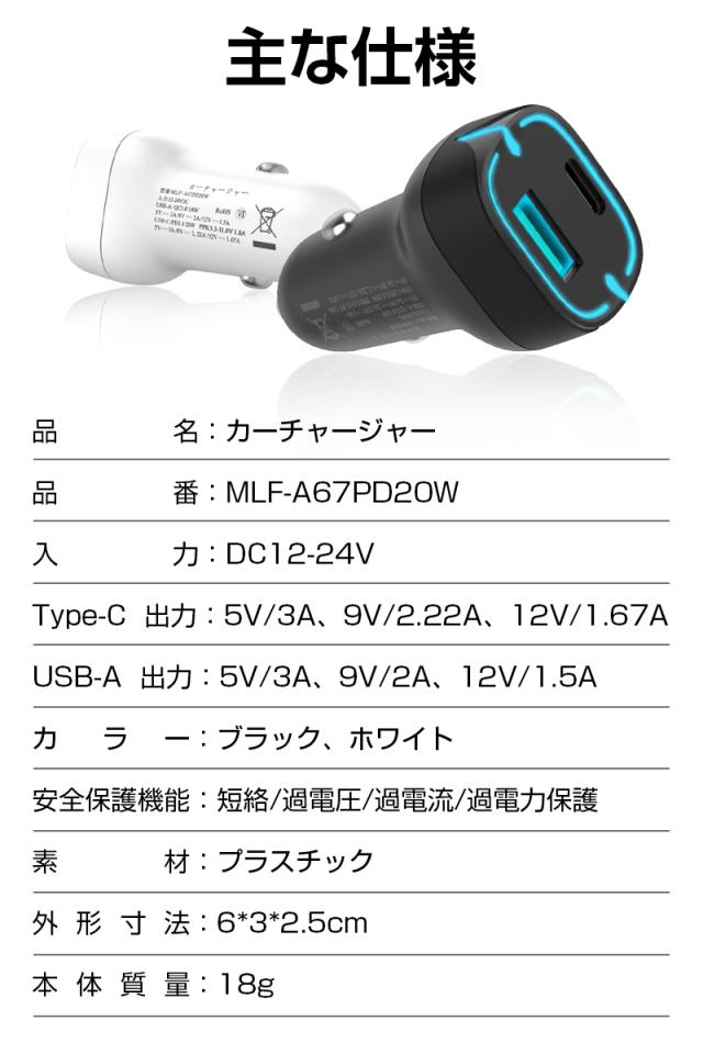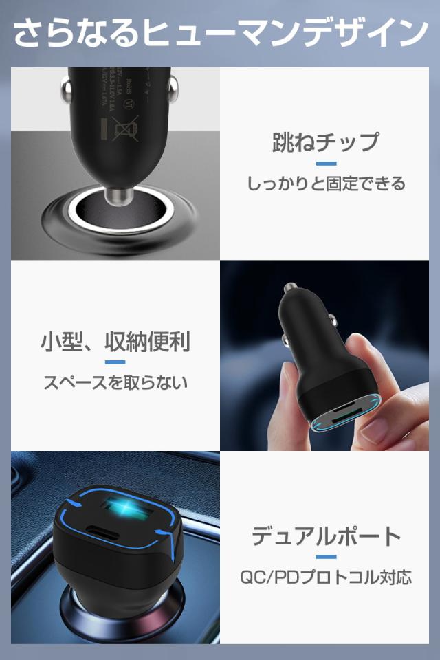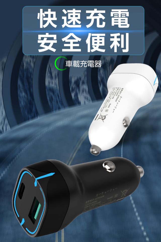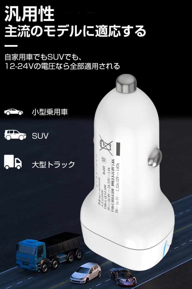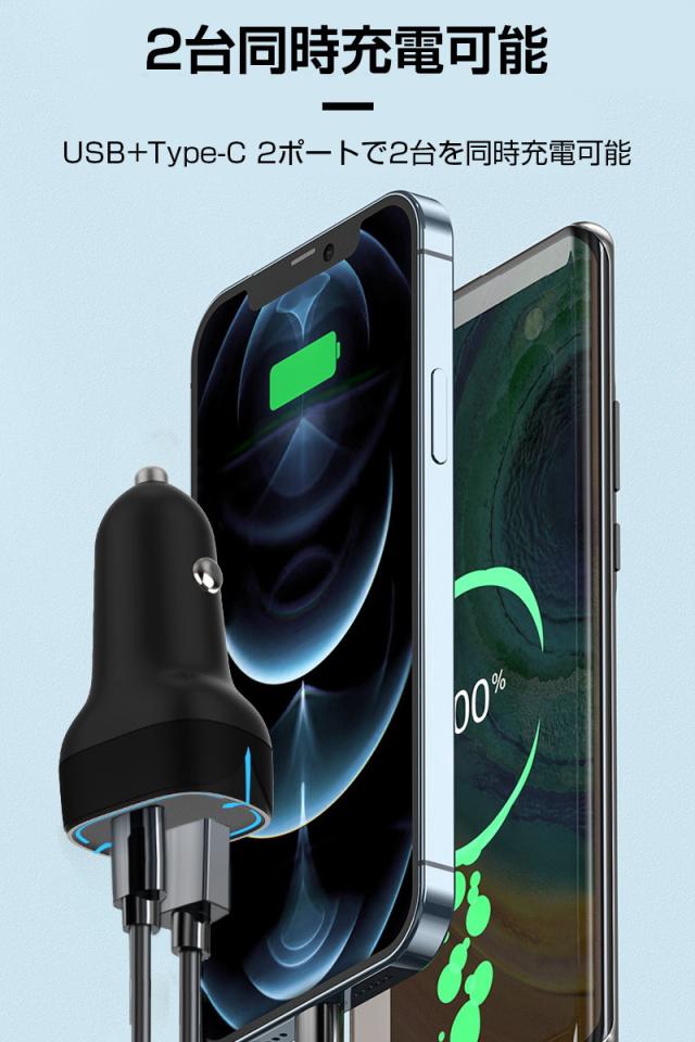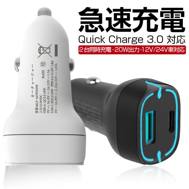 車載充電器 カーチャージャー シガーソケットUSB出力ポート Type-C出力ポート 20W 12V・24V車対応 急速充電 スマホ充電器 送料無料 【PL保険加入済み製品・安心】