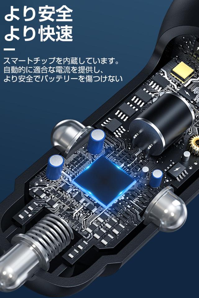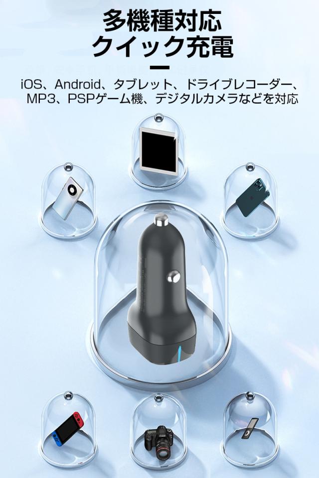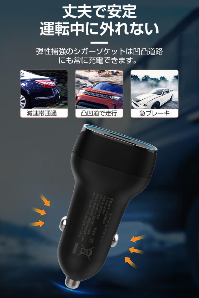 【簡単に利用できる】使い方も至って簡単で、カーチャージャーの先っぽをシガーソケット(12V/24V)に挿し込むだけ。悩む必要なく誰でも簡単に取り付けることが可能です。あとは、iPhoneやAndroidなどのスマホ・iPadなどのタブレット・AirPodsなどのワイヤレスイヤホン・IQOSなどの電子タバコといった充電したいガジェットに合わせた充電ケーブルを接続するだけ。