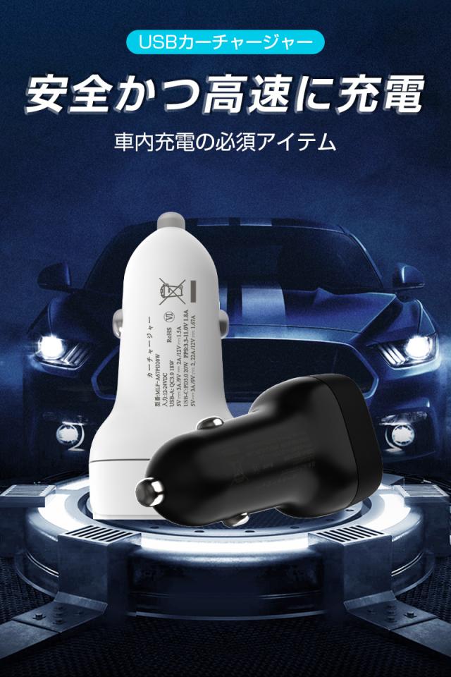 【車内充電の必須品】カーチャージャーは、車の中でスマホやタブレットの充電、ナビアプリ、ハンズフリー通話、電子タバコの充電などの電源確保にはかかせない車載用充電器です。日頃、車に乗る機会が多いドライバーのみなさんにとってiPhoneやAndroidスマホの電池切れ対策として必須のアイテムです。