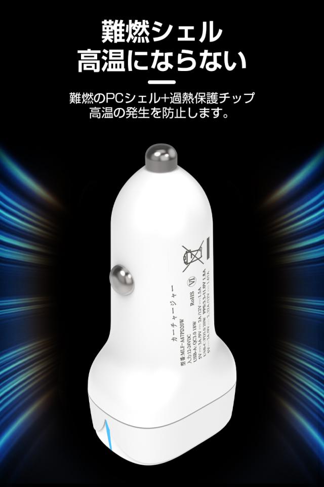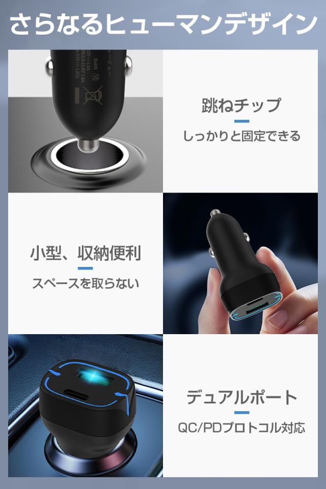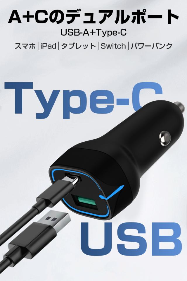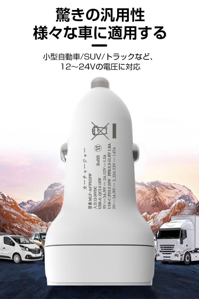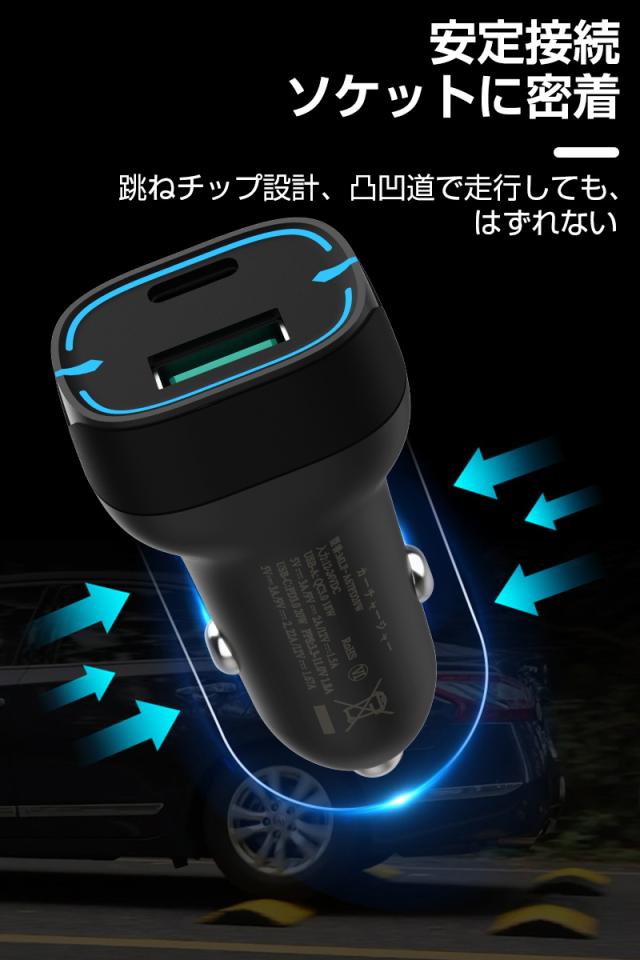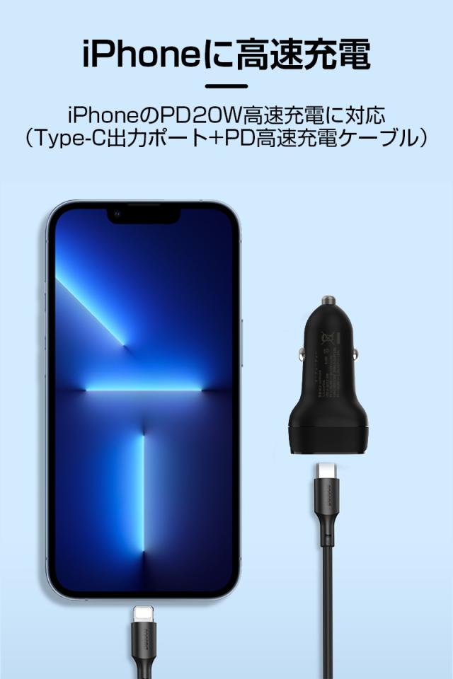 カーチャージャー 車載充電器 シガーソケット充電器 USB出力ポート Type-C出力ポート 20W 急速充電12V 24V車対応 iPhone13 / 12 【PL保険加入済み製品・安心】
