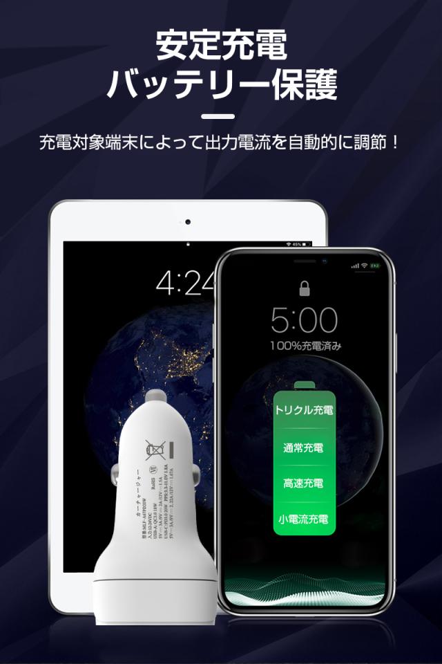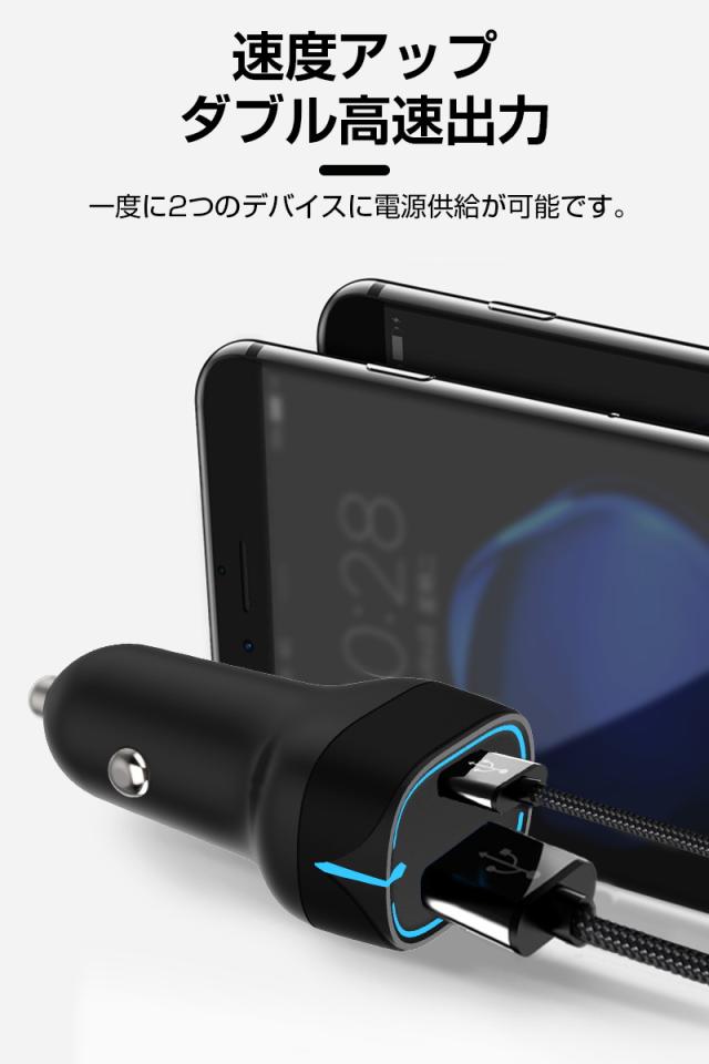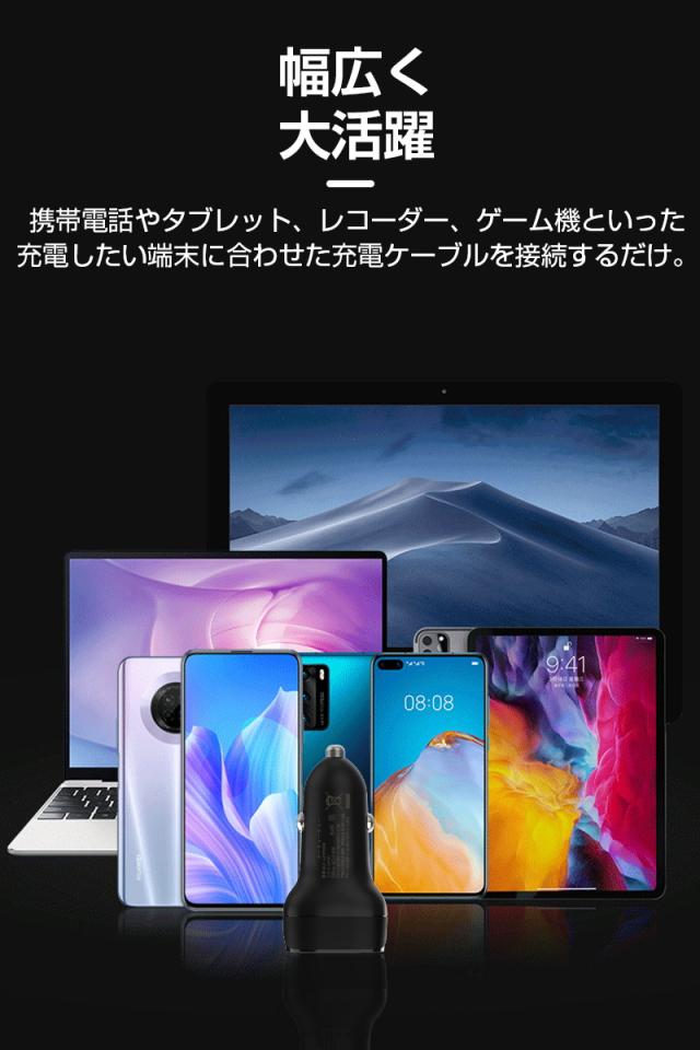 【ダブル出力】より多くのガジェットを充電したいドライバーや、同時に使いたい場合にUSBポートが増設されたこの車載充電器のカーチャージャーはきっと重宝されます。
