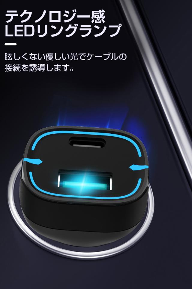 - シガーソケットが少し引っ込んだ位置なので、LEDライトがありがたいです。 2台接続でもちゃんと充電できました。