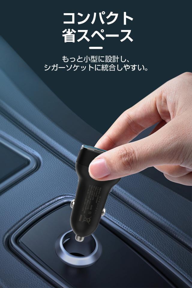 【簡単に利用できる】使い方も至って簡単で、カーチャージャーの先っぽをシガーソケット(12V/24V)に挿し込むだけ。あとは、iPhoneやAndroidなどのスマホ・iPadなどのタブレット・AirPodsなどのワイヤレスイヤホン・IQOSなどの電子タバコといった充電したいガジェットに合わせた充電ケーブルを接続するだけ。