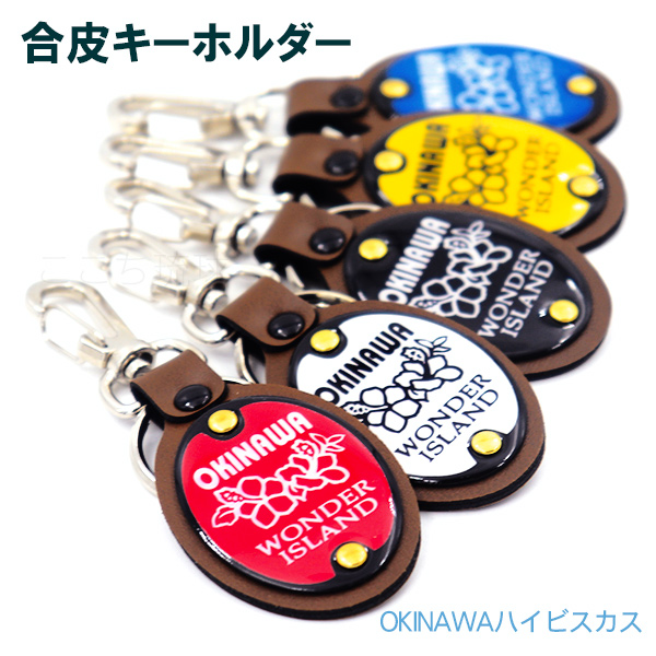合皮キーホルダー OKINAWA ハイビスカス /沖縄お土産 沖縄雑貨 【M便】