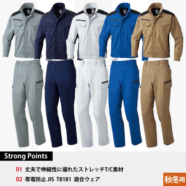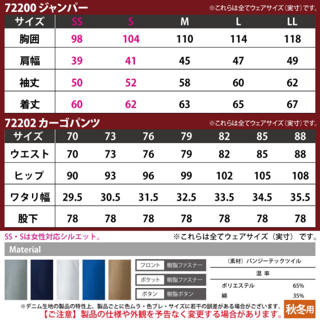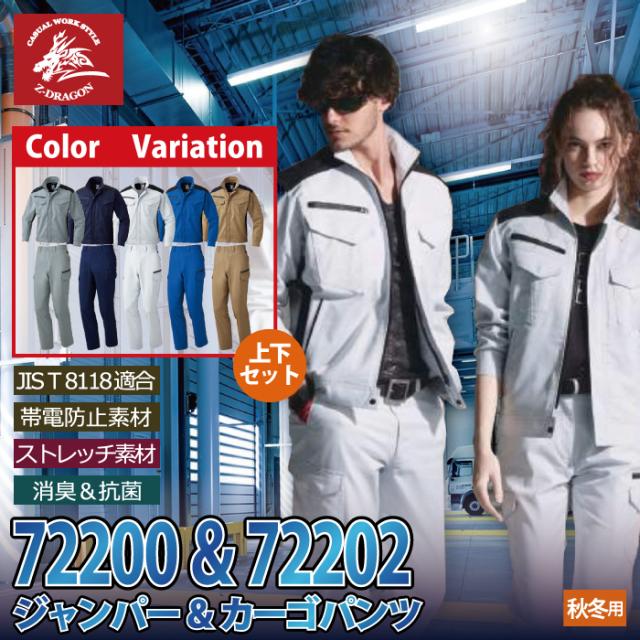自重堂 作業服 上下セット 72200 ストレッチジャンパーS-LL と 72202 ストレッチノータックカーゴパンツ 70-88 秋冬用 かっこいい おしゃれ 作業着