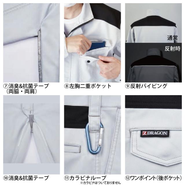 ◇機能:背ネーム、携帯電話収納ポケット、内ポケット、消臭&抗菌テープ(両脇・両肩)、反射パイピング、ウイングアーム?U、アクションプリーツ、左袖ペン差し、左胸二重ポケット、樹脂ファスナー(フロント、ポケット)、樹脂ボタン