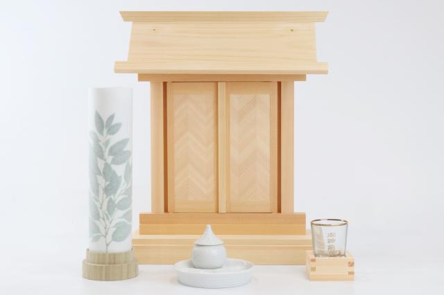 神棚セット「いま・むかし」 モダン 総桧の神棚 神前 榊灯ろう 神具セット