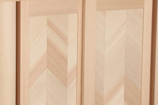 桧の山のふもとの工房で作られた総桧のお社。開き戸の飾り文様は、細かく繊細な、日本の伝統工芸そのもの。正目と板目が織りなす桧の木肌は、お社一体ごとにシンプルで清楚な趣き。コンパクトで薄型サイズは、普段の毎日にすっと馴染む「小さな神社」です。