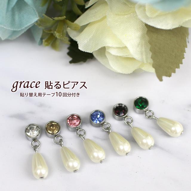 grace貼るピアス ドロップパール シルバー 選べるストーンカラー 貼り替えテープ付き シールピアス ノンホールピアス ピアスシール パール 貼るだけ レディース イアリング シールピアス 痛くない おしゃれ 人気デザイン