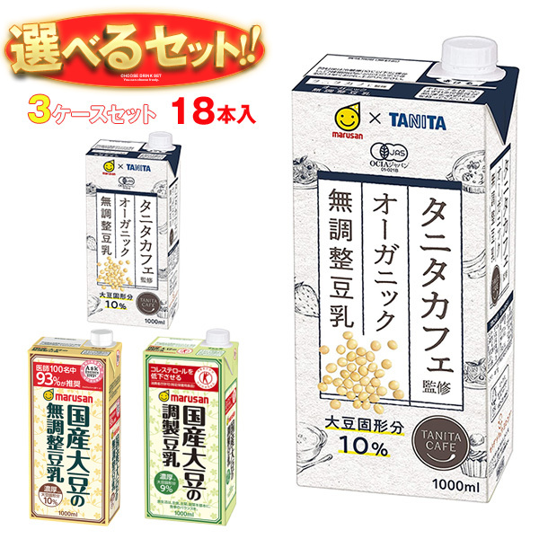 マルサンアイ 豆乳飲料 選べる3ケースセット 1000ml紙パック×18(6×3)本入| 送料無料 豆乳 オーガニック タニタ 無調整