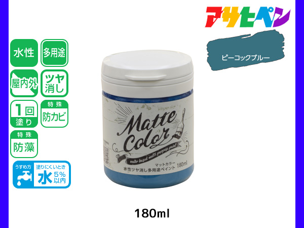 アサヒペン 水性ツヤ消し多用途ペイント マットカラー 180ml ピーコックブルー 塗料 ペンキ 屋内外 1回塗り 低臭 木部 鉄部 壁紙