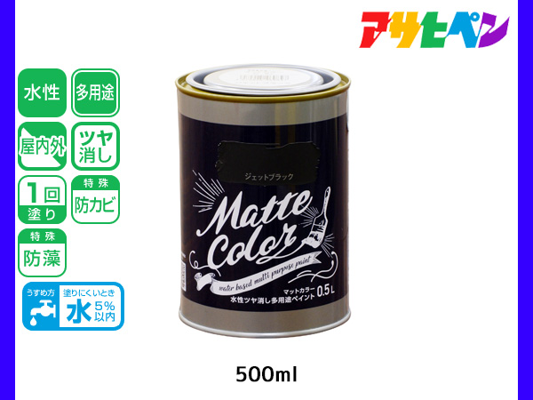 アサヒペン 水性ツヤ消し多用途ペイント マットカラー 500ml (0.5L) ジェットブラック 塗料 ペンキ 屋内外 1回塗り 低臭 木部 鉄部 壁紙