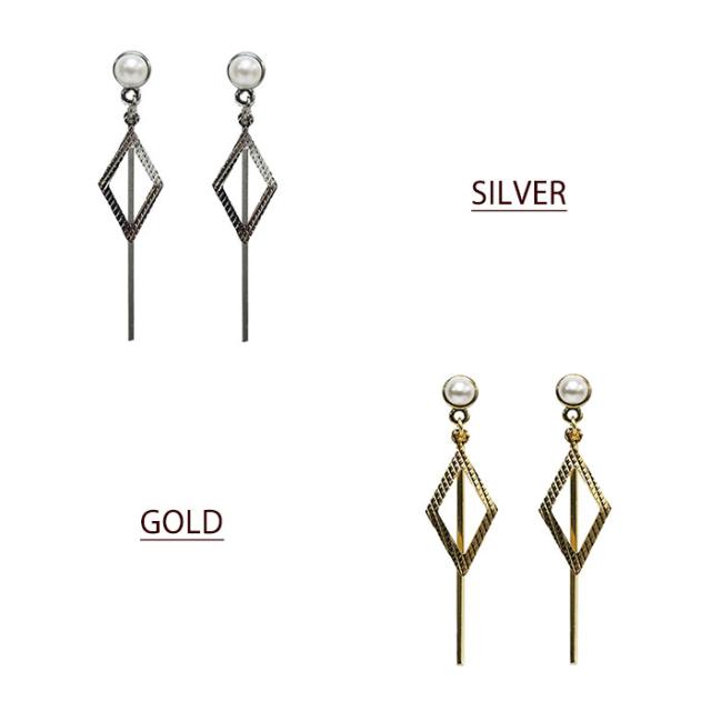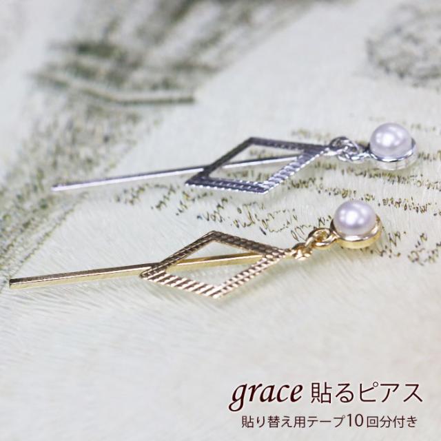 grace貼るピアス スティックスクエア シルバー ゴールド 貼り替えテープ付き ノンホールピアス シールピアス パール 貼るだけ レディース イヤリング シールピアス 痛くない おしゃれ パール シンプル メタルパーツ バー ひし形 ダイヤ型