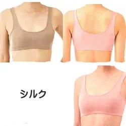 直接肌にあたらない様、アンダーバストのゴム部分もシルクで覆っています。