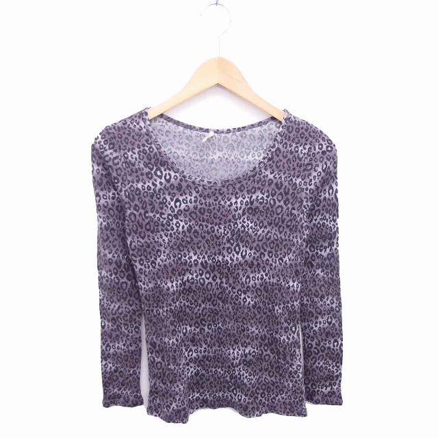 【中古】B&Y ユナイテッドアローズ ニット セーター ヒョウ柄 レオパード 丸首 薄手 長袖 パープル ブラック 紫 黒