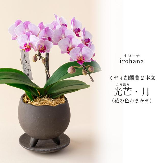胡蝶蘭 ミディ 2本立 鉢植え 花の色おまかせ 鉢 光芒 月 熊本県産 なかがわ農園 irohana 洋蘭 ラン 洋ラン 花 産直 常温便 同梱不可 指定日不可