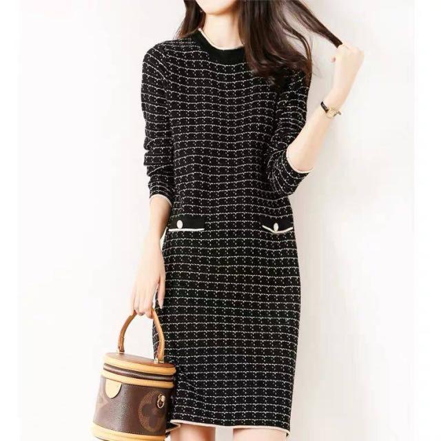 ニットワンピース レディース 秋冬 膝丈 ワンピース 厚手 きれいめ チェック 上品 ワンピース 大人 お出かけ 30代 40代 50代 通勤 着痩せ