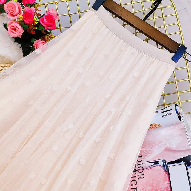 チュールスカート マキシ丈 レディース ロングスカート Aライン レーススカート 姫系 スカート ロング Aラインスカート 四つ葉クローバー柄