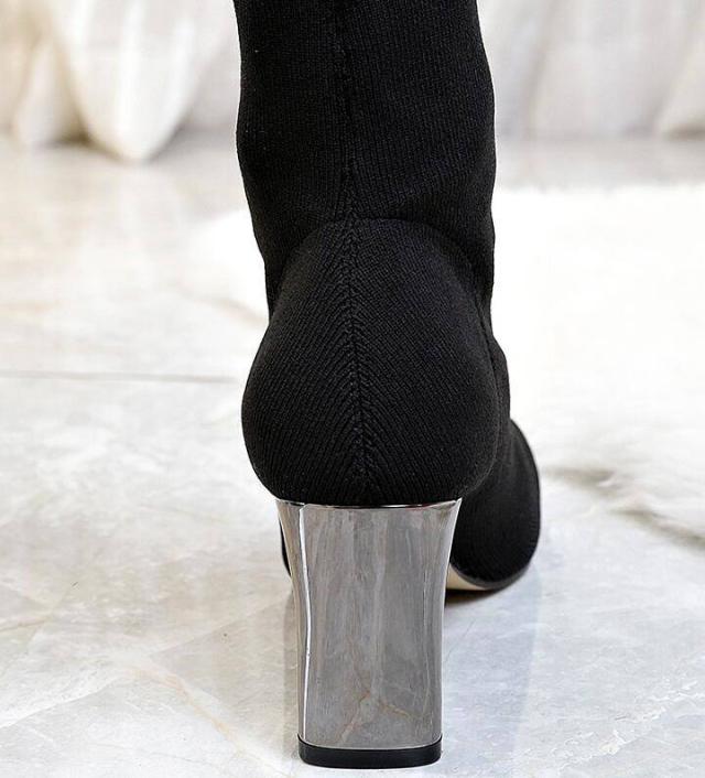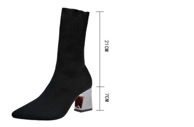 ブーツ レディース ショートブーツ 黒 ソックスブーツ ストレッチブーツ 太めヒール ミドルブーツ ヒールブーツ 美脚 黒シューズ 靴 レディースブーツ 秋冬