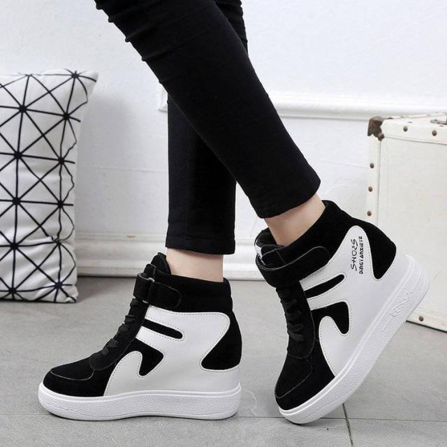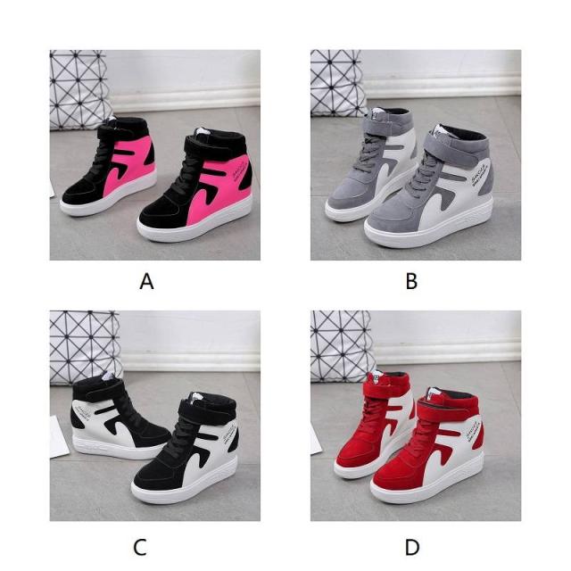 スニーカー レディース ハイカット インヒール マジックテープ スエード レースアップシューズ 厚手 厚底 秋冬物 大きいサイズ 運動靴 skt-154