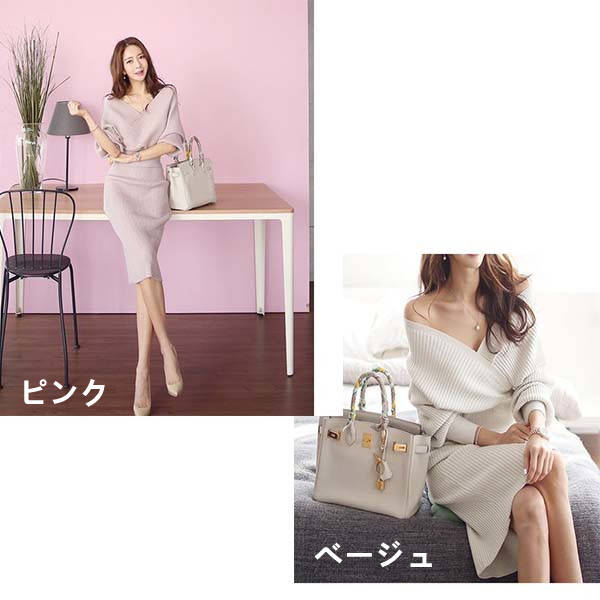 ニットセットアップ レディース 40代 秋冬 ニットワンピースセットアップ通勤 きれいめ タイトスカート 長袖Vネックセーター セクシー オシャレ 韓国風