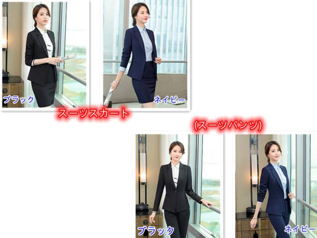 | 色 | ブラック(スーツパンツ) ブラック(スーツスカート) ネイビー(スーツパンツ) ネイビー(スーツスカート) |