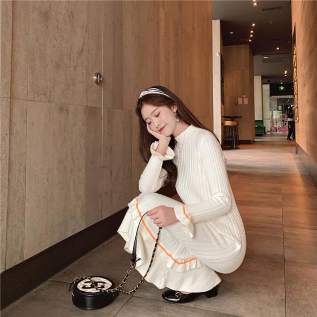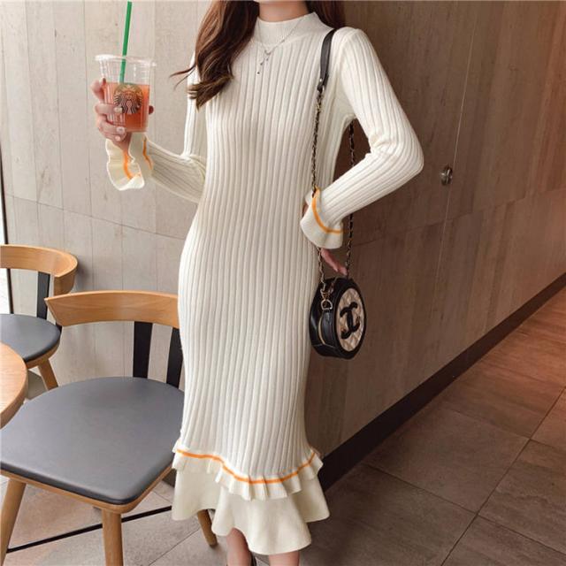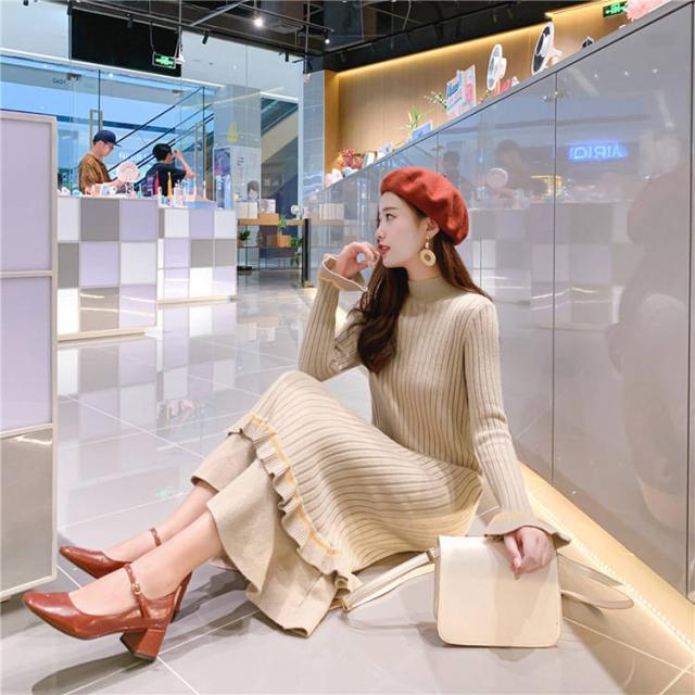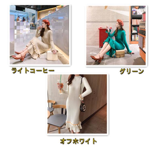 ニットワンピース レディース 40代 秋冬 長袖ワンピース ハイネック ニットロング丈スカート フレア ニットインナー 無地セーター オシャレ 韓国風 大人 上品