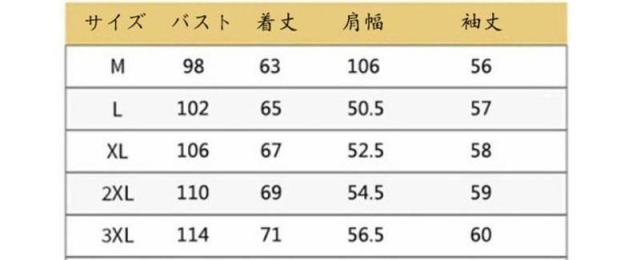 | サイズについての説明 | サイズ M L XL 2XL 3XL 4XL |