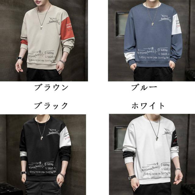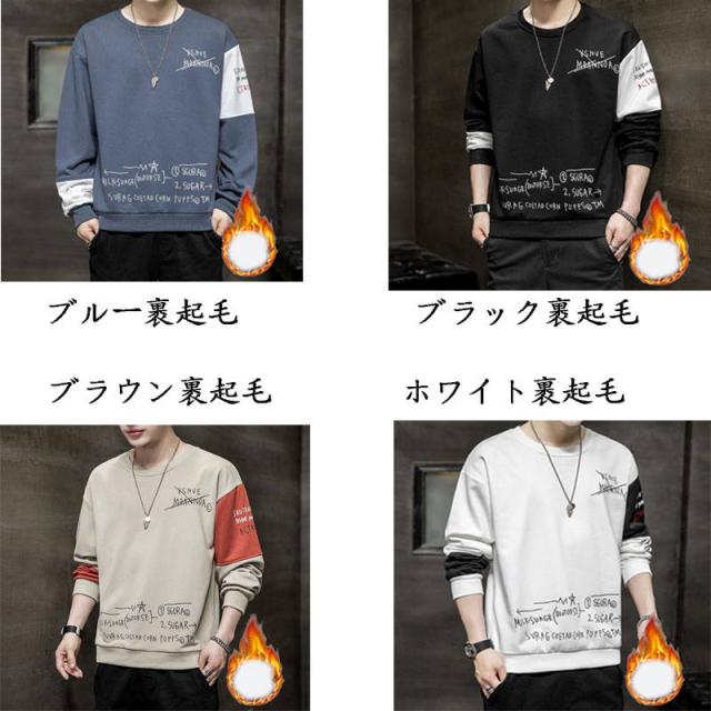 ロンT メンズ 長袖Tシャツ 裹起毛 ロングTシャツ ロンティー クルーネック 秋冬服 英文柄 切り替え スリム メンズファッション 2020新作 20代 30代 40代