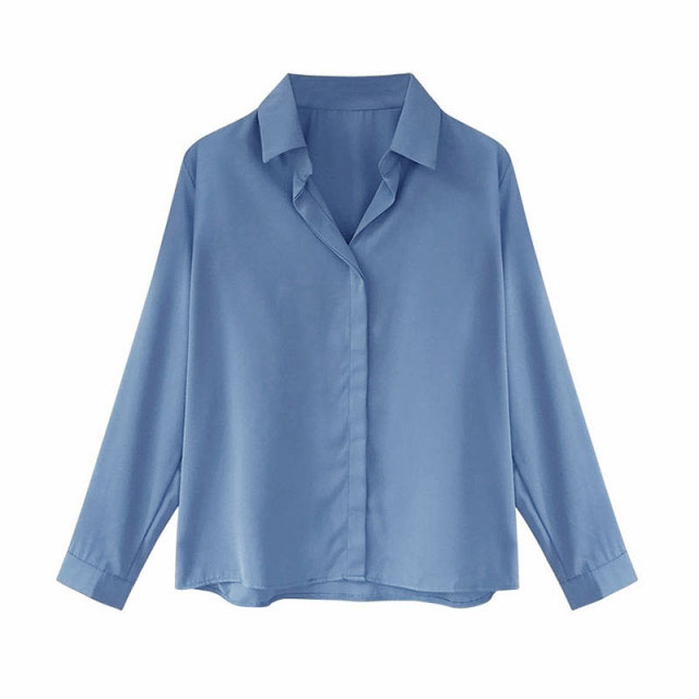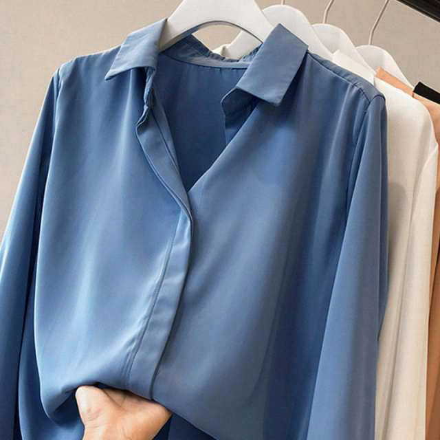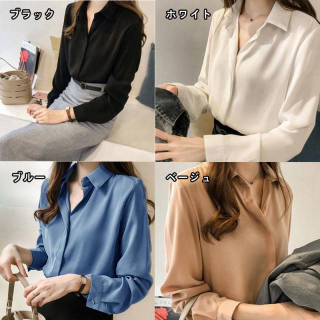 シャツ レディース ブラウス長袖シャツ トップス オフィス 無地 長袖 体型カバー 着痩せ 代引不可