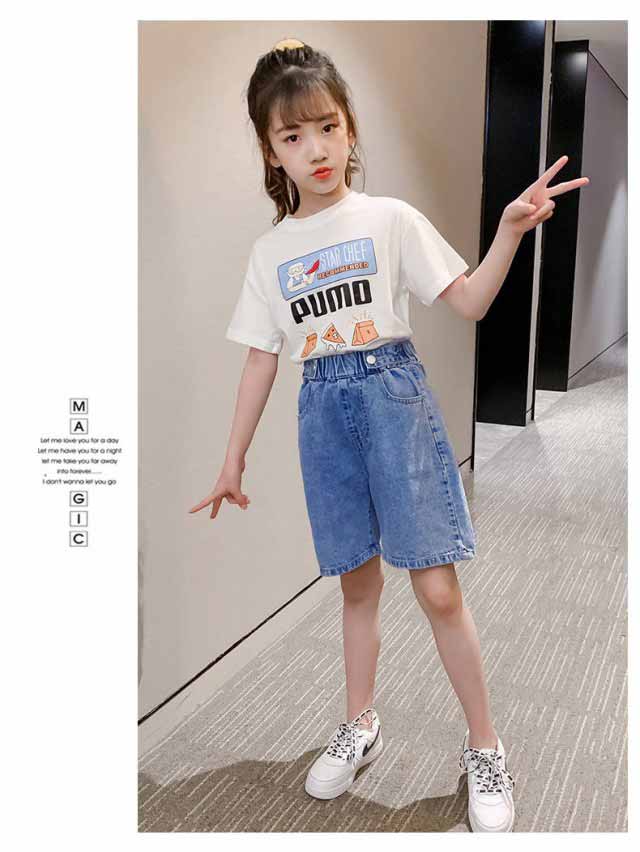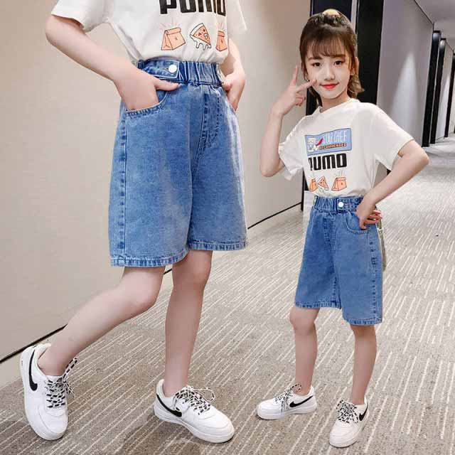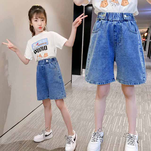 デニムパンツ 子供服 女の子 パンツ ショート丈 ハーフパンツ ワイドパンツ 定番 可愛い カジュアル ゆるい シンプル ボトムス 春秋 春新作
