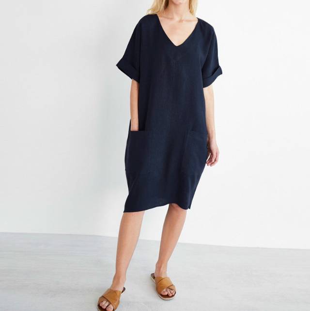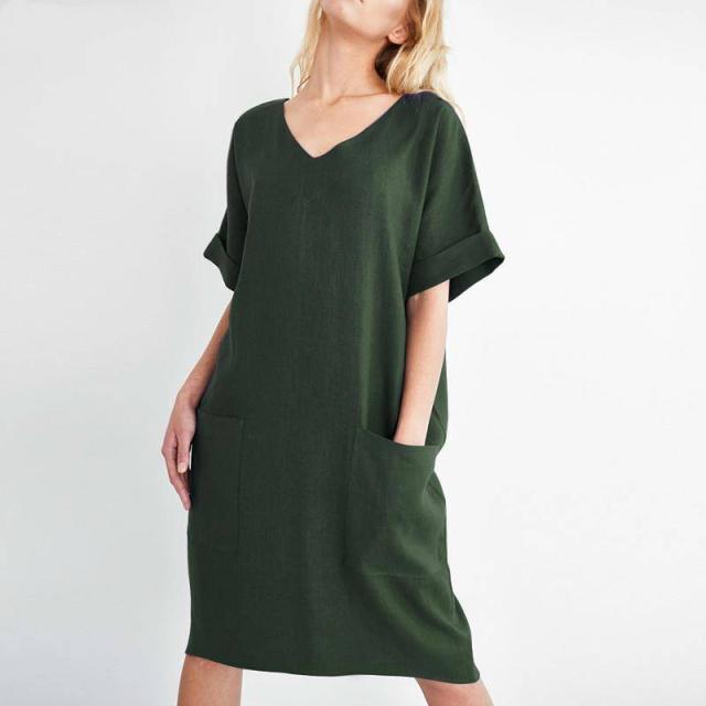ワンピース ワンピ レディース 夏 膝丈 半袖 体型カバー 美脚 aライン ポケット付き 綿麻 フレンチスリーブ 無地 Vネック 新作 ゆったり 大きいサイズあり