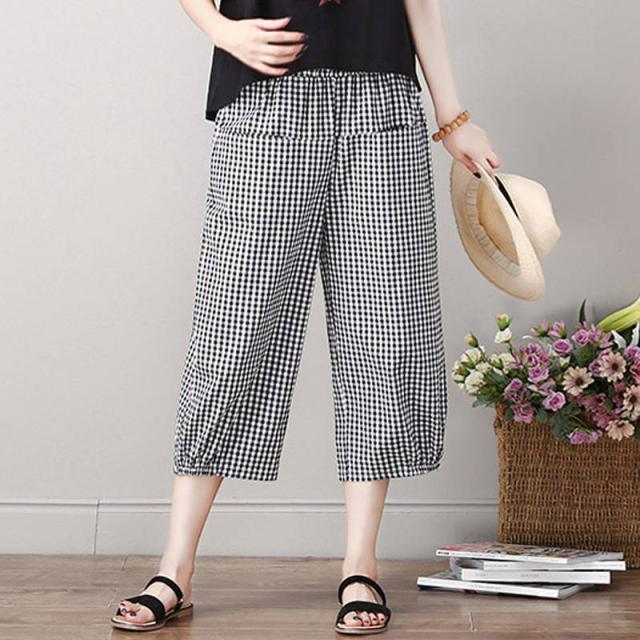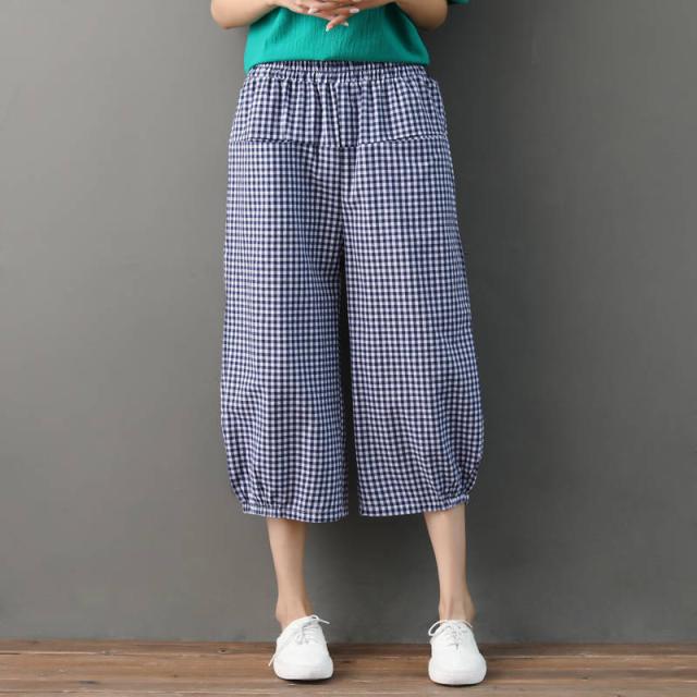 ワイドパンツ ガウチョパンツ パンツ スカンツ スカーチョ ズボン レディース ウェストゴム ハイウエスト チェック柄 ポケット付き 無地 ゆったり 綿麻風 春 夏