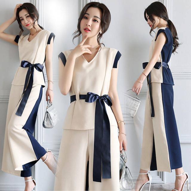 セットアップ 上下セット ノースリーブ シャツ*ガウチョパンツ 2点セット レディース 着痩せ 大きいサイズ 夏新作 レディース ファッション