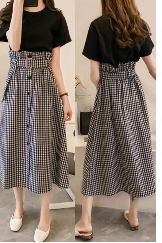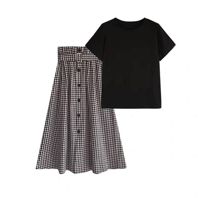 セットアップ レディース ギンガムチェック スカートセット ハイウエスト 大きいサイズ 着痩せ 半袖 可愛い 定番 夏物 ファッション 新作