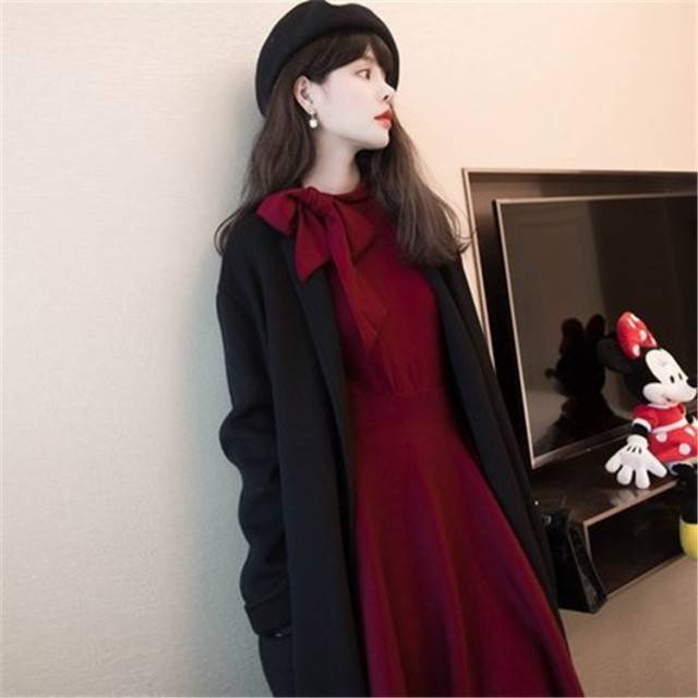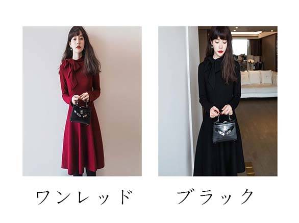 レディース ニットワンピース ドレス メリヤス 長袖 蝶結び ルロング丈 タイトスカート 秋冬 ワンピース 無地 韓国風 着痩せ 上品 通勤 30代40代 新作