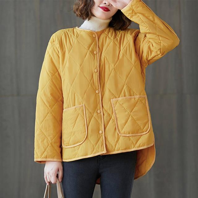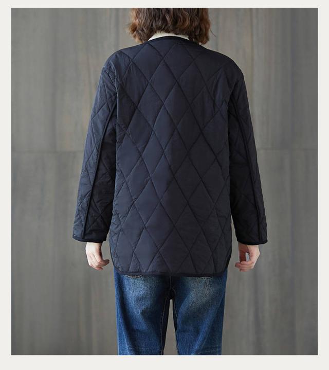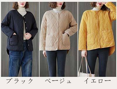 キルティングコート レディース ノーカラージャケット 40代コート 体型カバー カジュアル おしゃれ ブラック 秋服 秋物 韓国風 アウター 30代/40代/50/代/60代