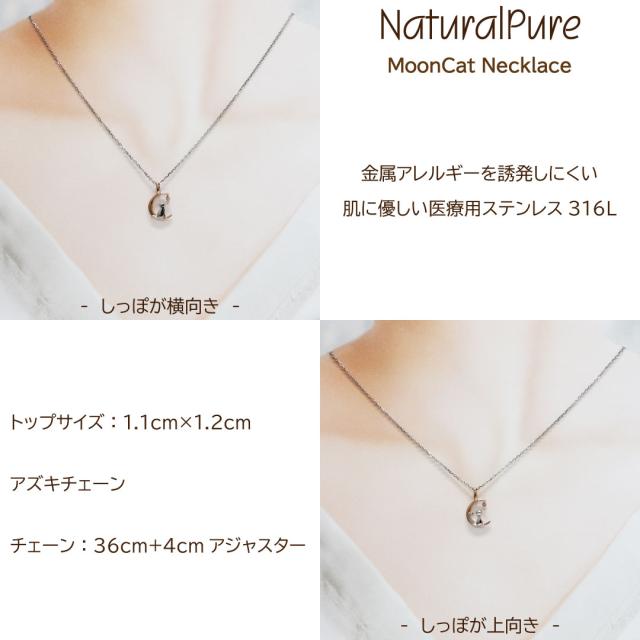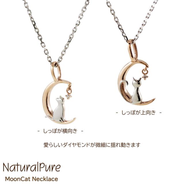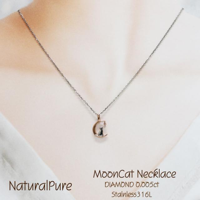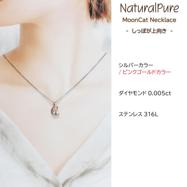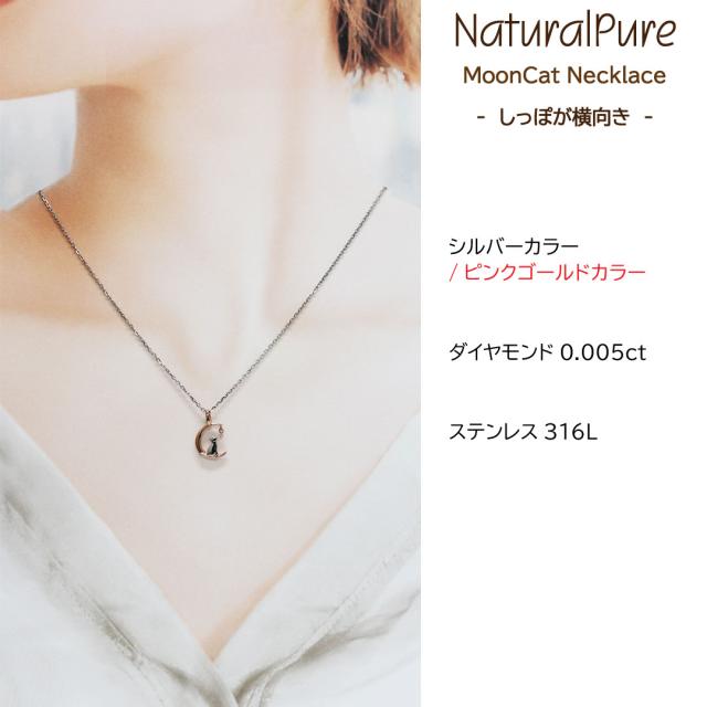 ネックレス 猫 レディース アレルギー対応 ネコ 月 ピンクゴールド シルバー 猫モチーフ 猫のネックレス ダイヤ 0.005ct 錆びない サージカル アレルギー ステンレス ペンダント