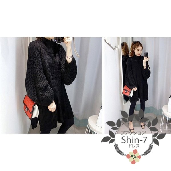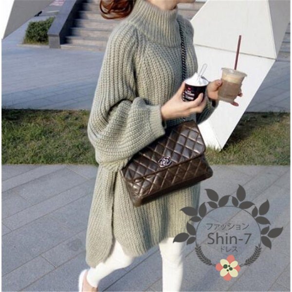 ニット セーター レディース ハイネック 秋 冬 長袖 トップス ロングニット スリット ゆったり 着痩せ お洒落 ニットワンピース 体型カバー 通勤 OL 30代 40代