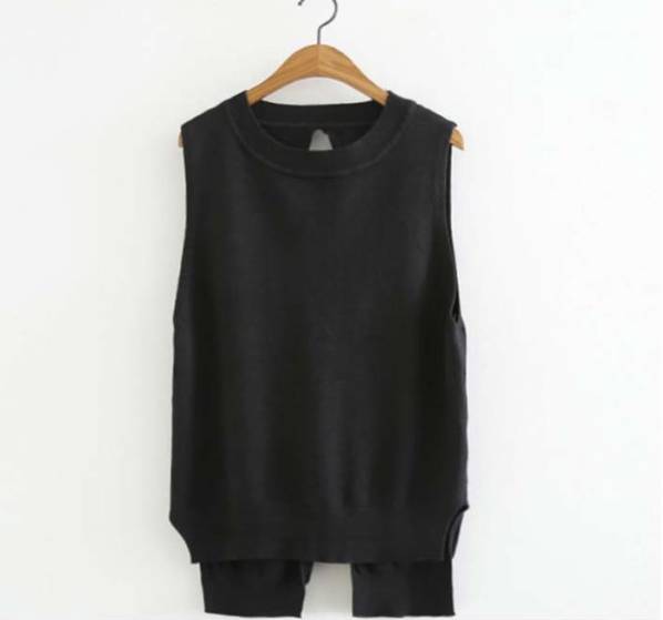 全5色 リボン レディース レイヤード スリット Vネック ベスト 冬 ベスト 前後差 無地 コーデ ノースリーブ トップス 普段着 韓国 シンプル ブラック 春 秋 ニットベスト オフィス 黒 ショット丈 ベージュ おしゃれ 大人 可愛い 後ろ