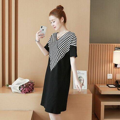 ワンピース レディース 40代 きれいめ 50代 30代 上品 ドレス 大きいサイズ ストライプ Vネック