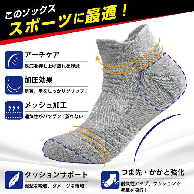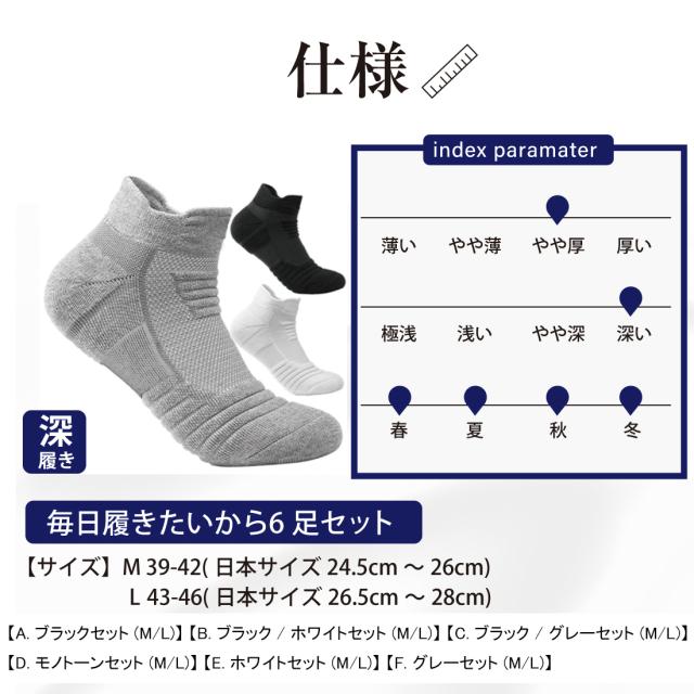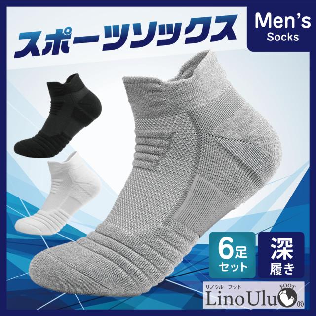 [6足セット] 送料無料! 靴下 メンズ スポーツ ソックス くるぶし ショート 厚手 綿 おしゃれ 無地 シンプル スニーカー レディース 春 夏 秋 冬 オールシーズン サッカー バスケ テニス ランニング ウォーキング 自転車 登山 通勤 通学 リノウル 深履き メッシュ加工