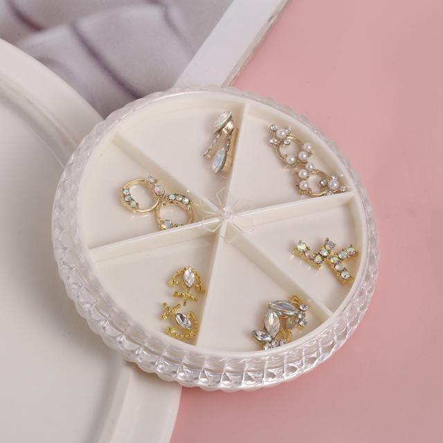 材質:亜鉛合金製+ガラス。入数:6種類各2個の12個セット。サイズ:8~10ミリ。