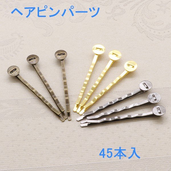 ヘアピンパーツ 45本入り【選べる3色あり】 ヘアピンパーツハンドメイドアクセサリーパーツスチール製